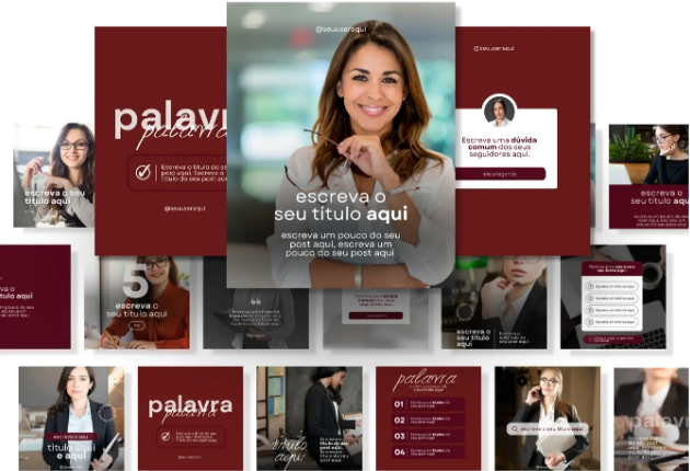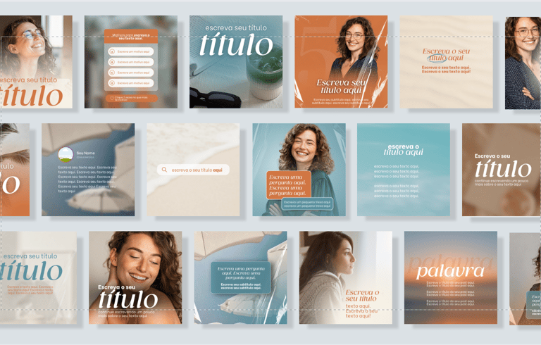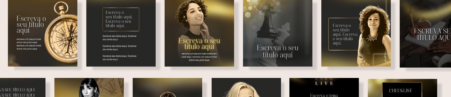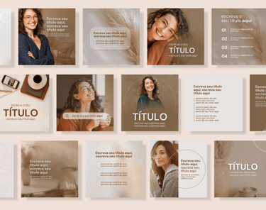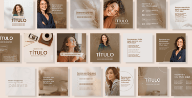 São mais de 60 modelos, projetados para elevar seu perfil a um nível superior, funcionando perfeitamente no Canva gratuito e cada um seguindo um padrão visual exclusivo.