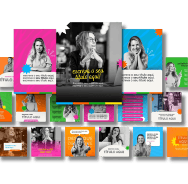 Você vai escolher a sua identidade visual e os seus modelos de posts favoritos. OBS.: vai poder usar todos os packs e modelos que quiser.